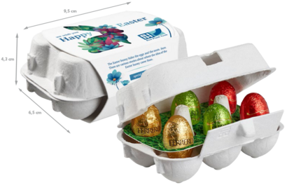 Caixa Tradicional Miniatura de Ovos com 6 Mini-Ovos Ferrero. Com Cinta Personalizada envolvente