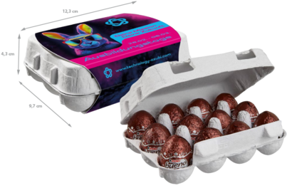 Estes Mini-Ovos podem ser disponibilizados avulso em caixas com pesos variados. Peso unitário: aprox. 13g, mas que varia em função de cada referência.