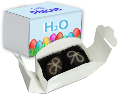 Caixa Sweets S2 Standard com 2 Mini-Ovos de Chocolate Decorado em formas plissadas e Cinta Personalizada